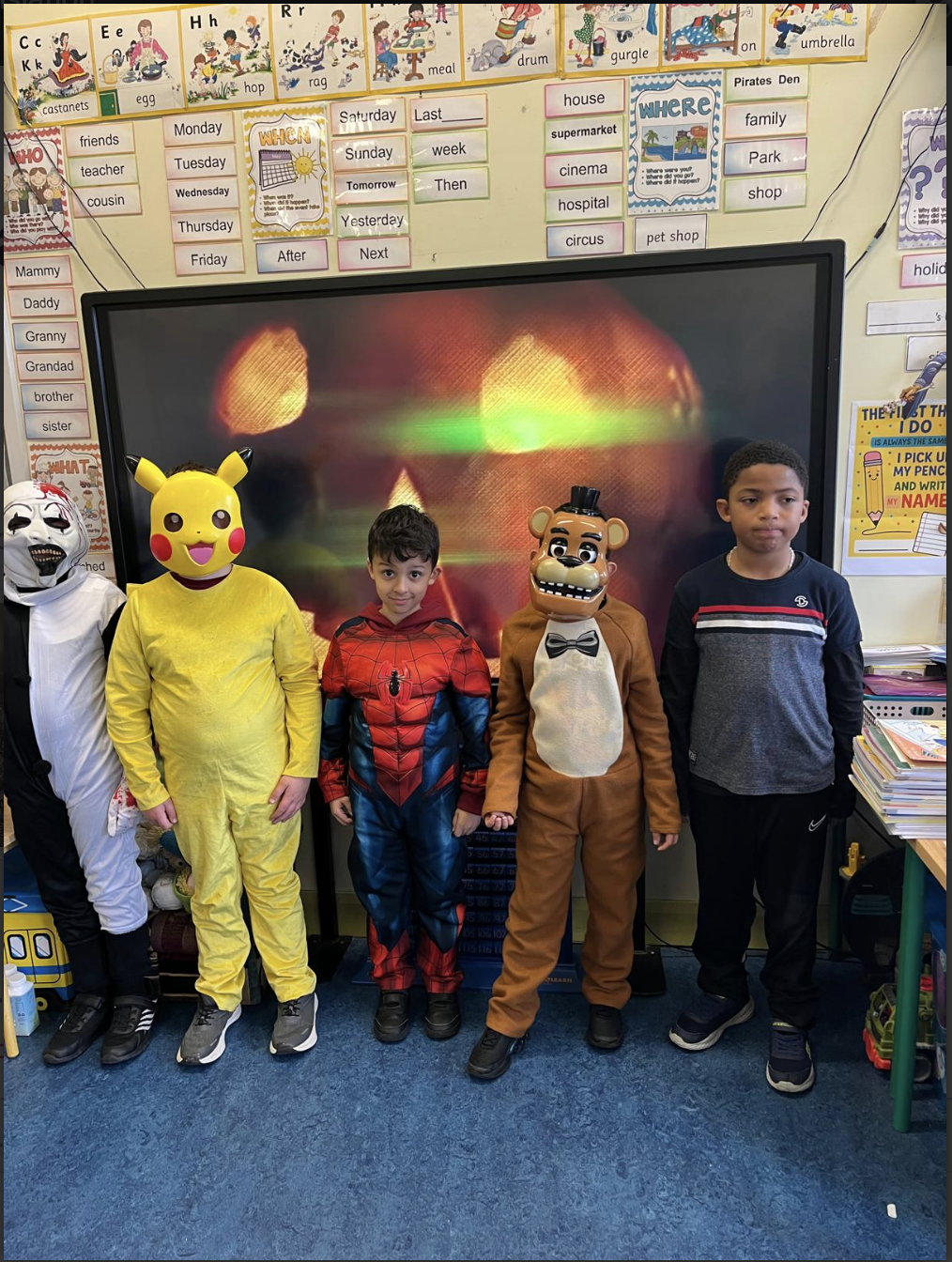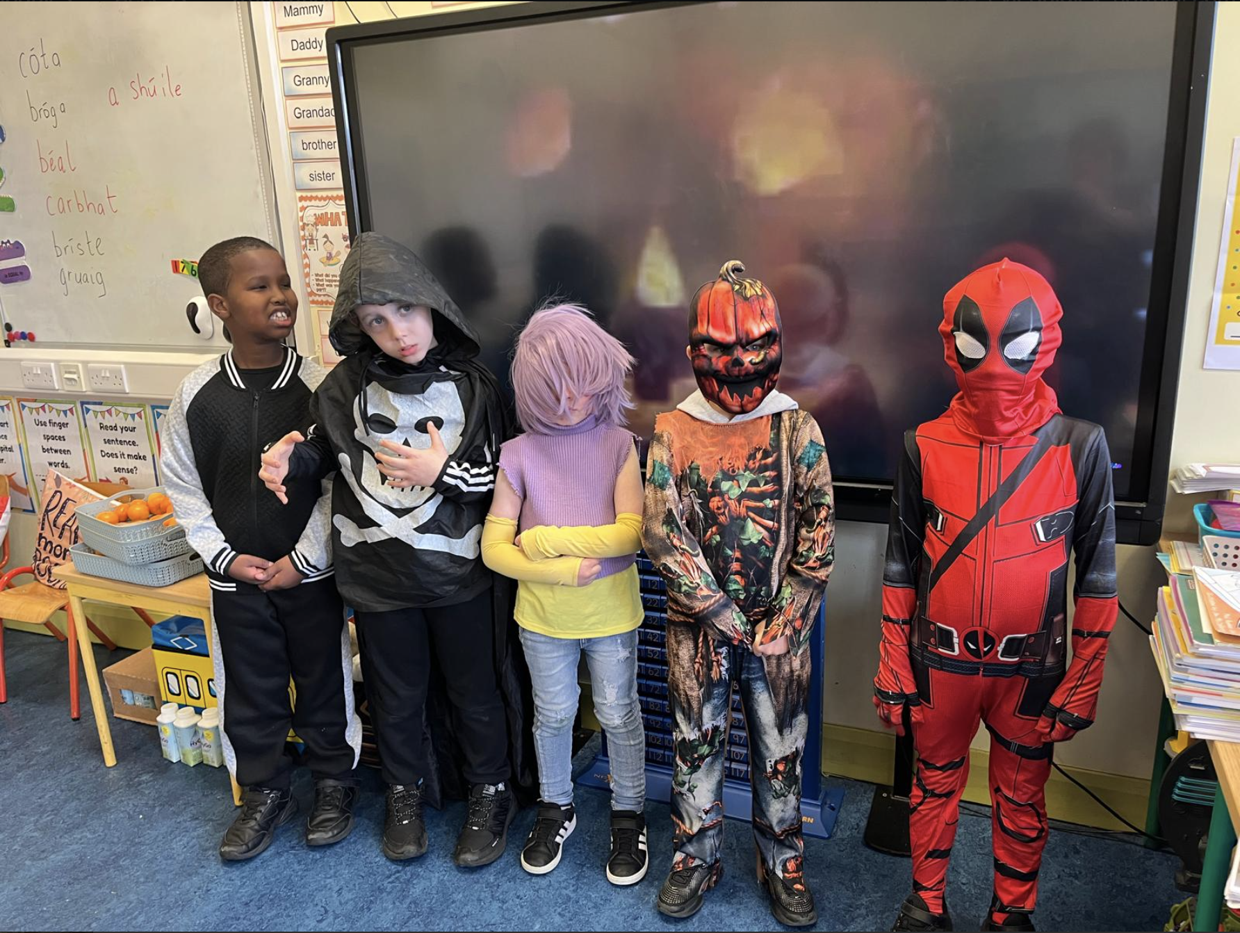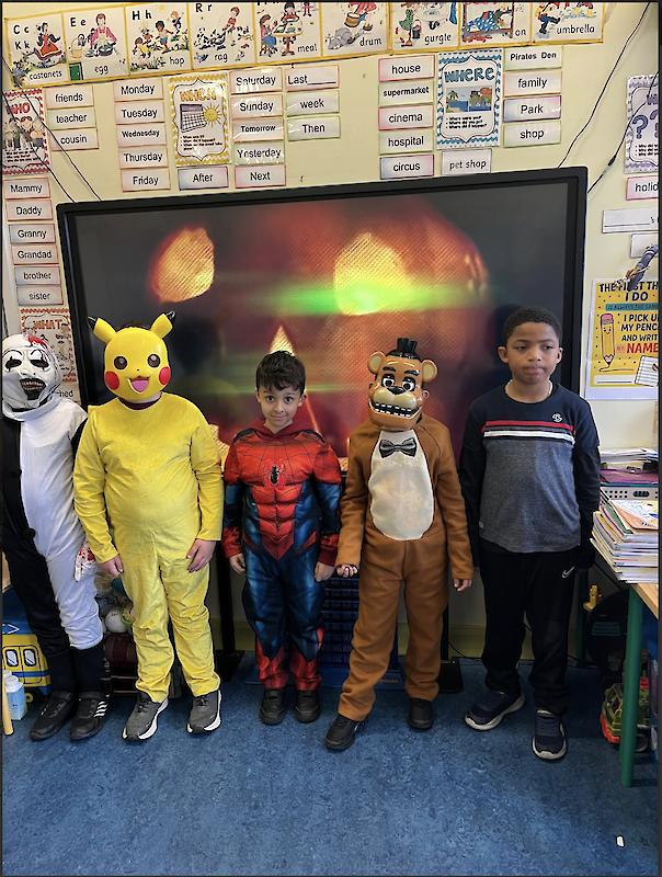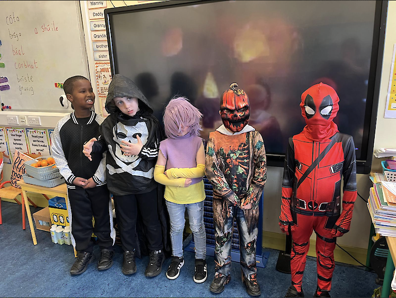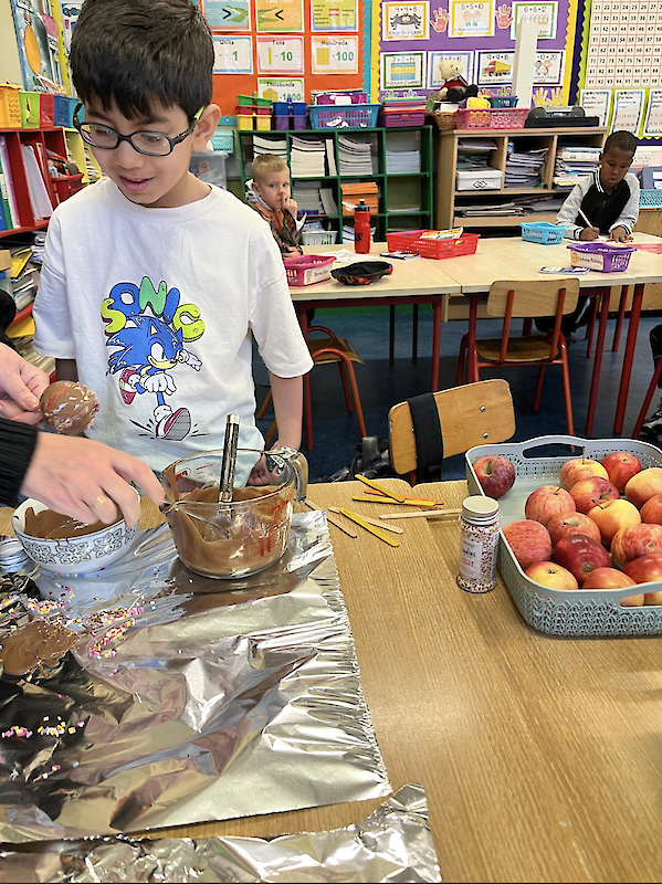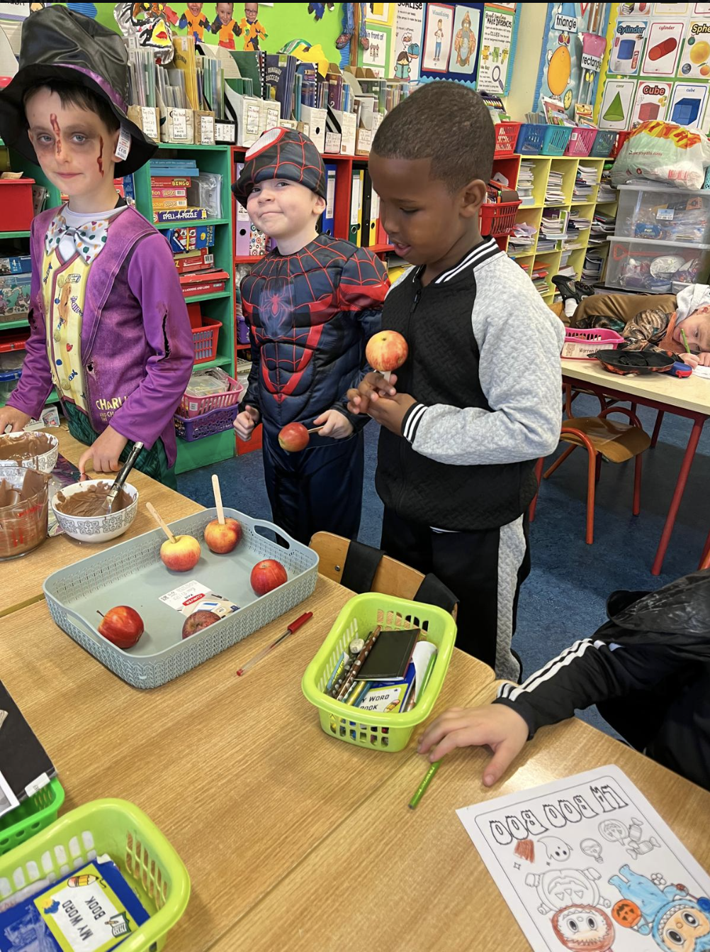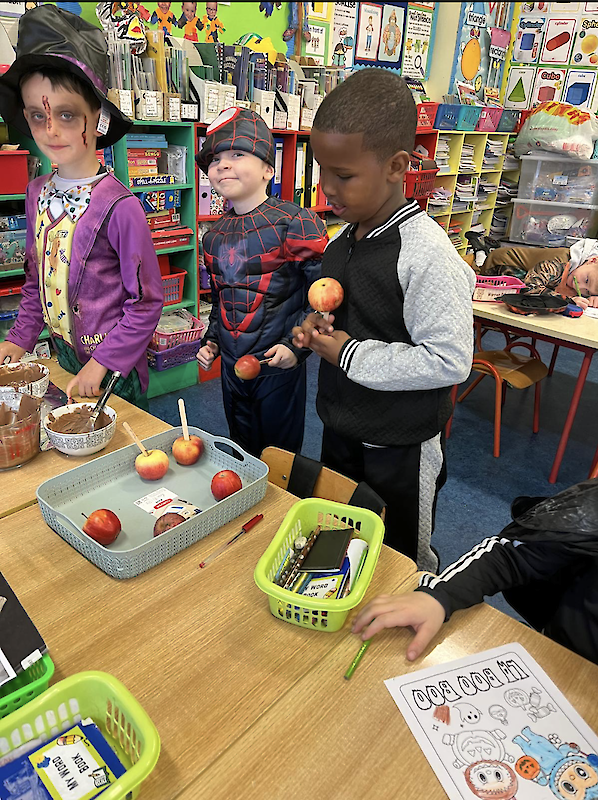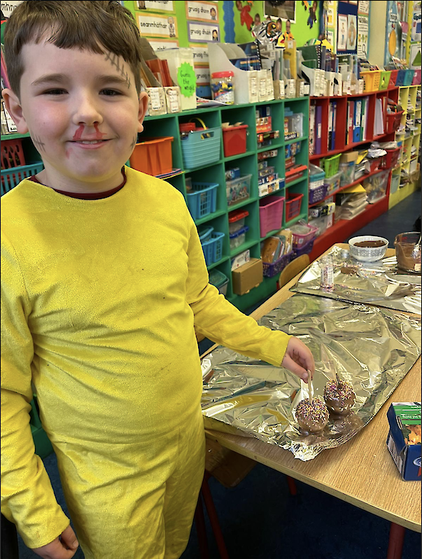 Second class dressed up for Halloween, and they really enjoyed their tasty chocolate apples!