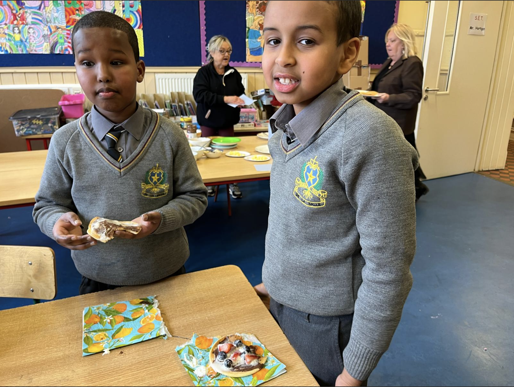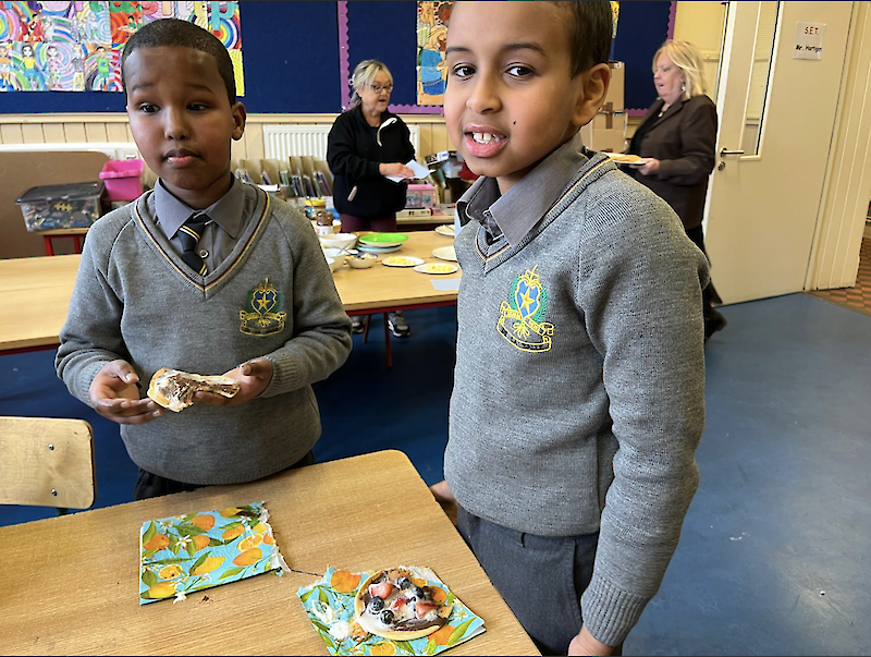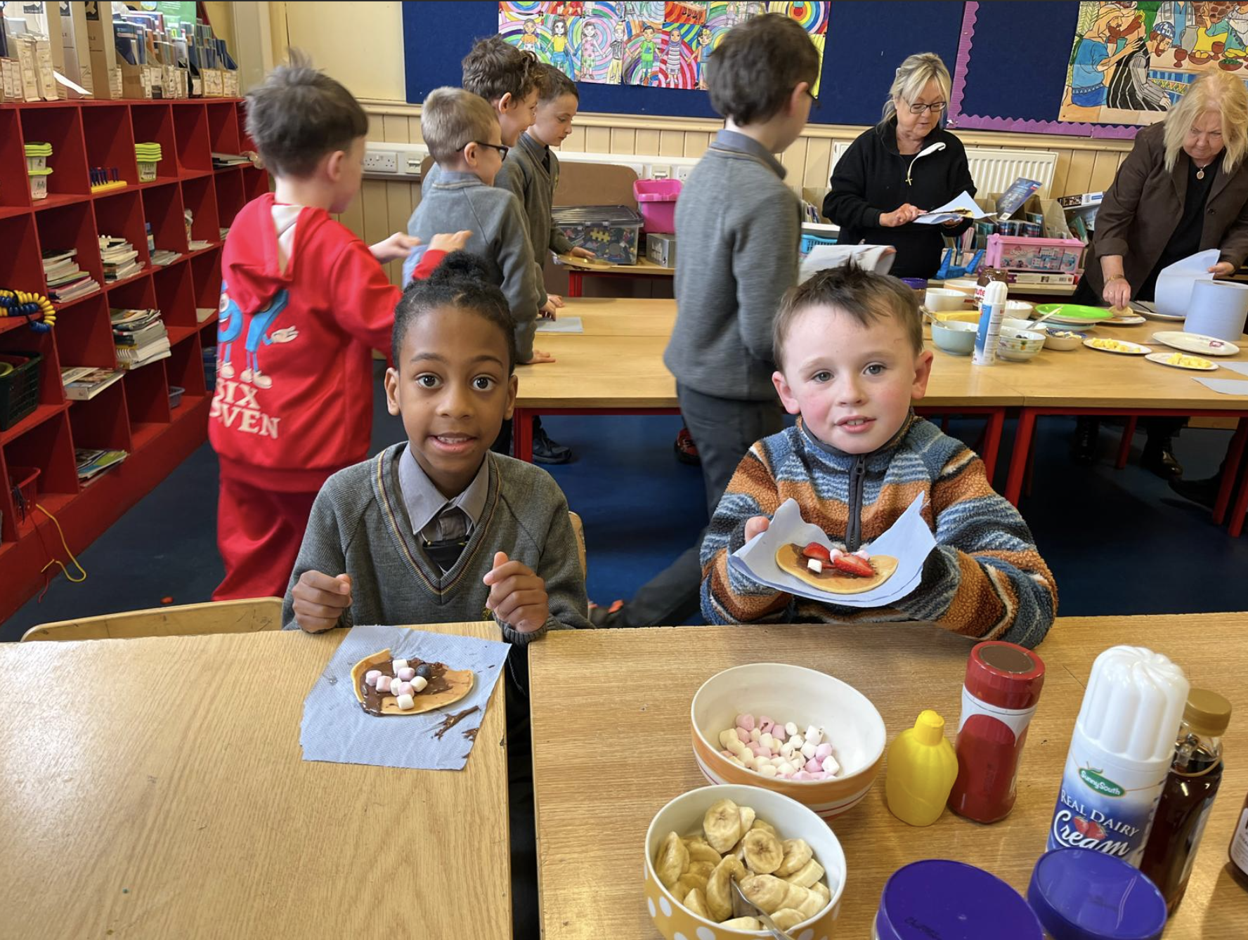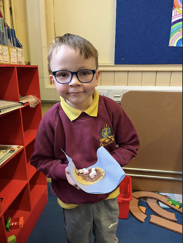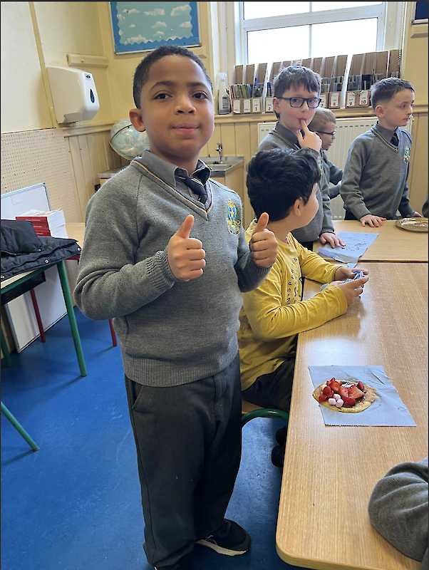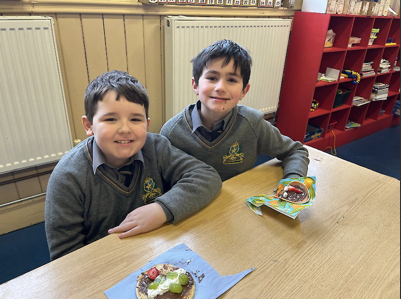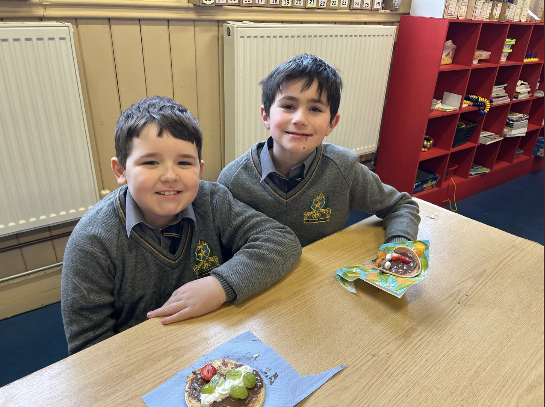 The boys in second class really enjoyed their pancakes on Pancake Tuesday.